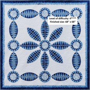 Happiness 2.0 is a stunning small wall hanging (38" x 38"), crafted in the beautiful colors of batik fabrics, it features a gorgeous center star and a striking spiked circle. Its manageable size and array of techniques make it ideal to learn many techniques in paper piecing. This will be a fun and rewarding experience for quilters of all skill levels!