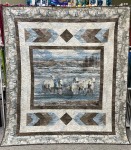 This kit features the beautiful panel from Northcott collection Running Free. Horses enjoy the water and wind as they are running across the river. Kit includes pattern and fabric to make quilt top and binding. We used a Stonehenge backing of 2 .5 yards.