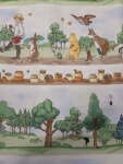 This kit features the fabric collection Classic Winnie from Studio E. It contains a border stripe fabric showing Pooh and his buddies strolling the Hundred Aker Wood. It has all the fabric you need for the quilt top and binding.